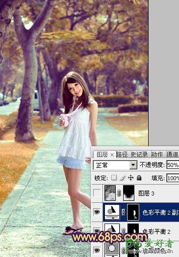 10、调出人物选区,然后创建色彩平衡调整图层,微调一下人物颜色,数值自定,大致效果如下图。