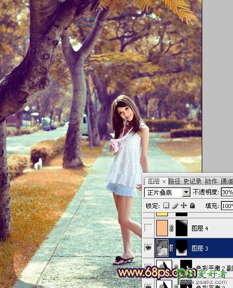 11、新建一个图层,按Ctrl + Alt + Shift + E 盖印图层。简单给画面的底部增加一些暗角,方法任选,大致效果如下图。