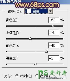 5、创建可选颜色调整图层,对绿、白、中性、黑色进行调整,参数设置如图6 - 9,效果如图10。这一步给