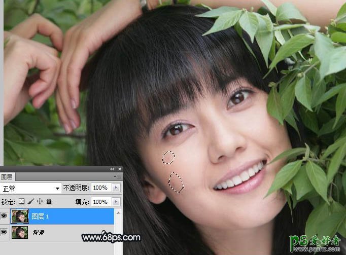 1、打开照片,复制一层,用修补工具对人物脸部进行简单处理,效果如图。