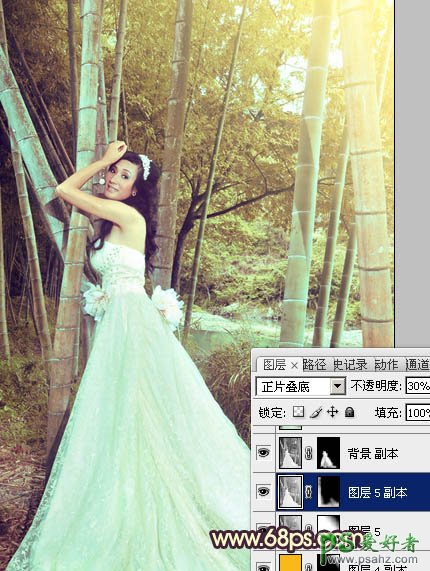 10、新建一个图层,按Ctrl + Alt + Shift + E 盖印图层。按Ctrl + Shift + U 去色,混合模式改为“正片叠底”,用黑色画笔把不需要变暗的部分擦出来,适当降低图层不透明度,效果如下图。