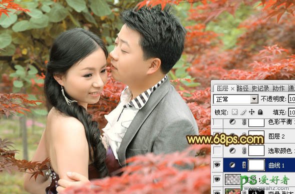 PS调色教程:给漂亮的情侣婚片调出温馨的橙红色