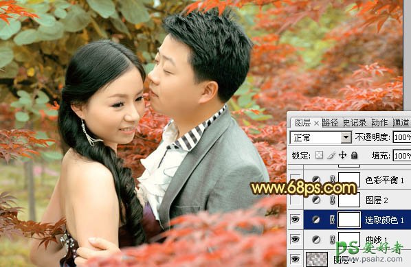 PS调色教程:给漂亮的情侣婚片调出温馨的橙红色