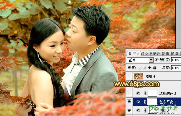 PS调色教程:给漂亮的情侣婚片调出温馨的橙红色