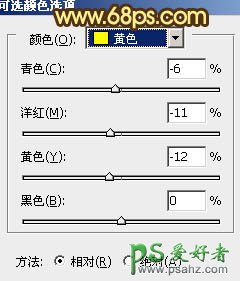 7、创建可选颜色调整图层,对黄色进行调整,参数设置如图17,效果如图18。这一步把黄色部分稍微调红一点。