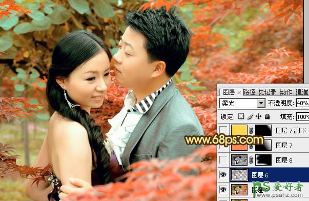 10、按Ctrl + Alt + ~ 调出高光选区,按Ctrl + Shift + I 反选,新建一个图层填充褐色:#6E5A51,混合模式改为“柔光”,不透明度改为:40%,效果如下图。