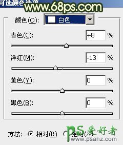 1、打开原图素材,创建可选颜色调整图层,对黄、绿、白进行调整,参数设置如图1 - 3,效果如图4。这一步把背景绿色转为青色,淡黄色部分转为橙黄色。
