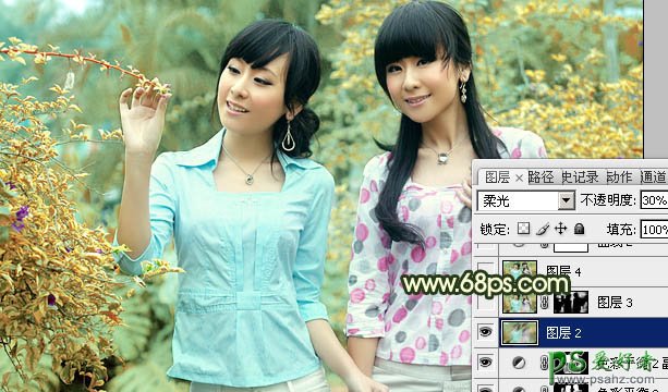 8、新建一个图层,按Ctrl + Alt + Shift + E 盖印图层。执行:滤镜 > 模糊 > 高斯模糊,数值为5,确定后把图层混合模式改为“柔光”,不透明度改为:30%,效果如下图。