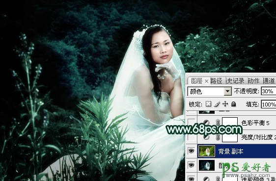 19、把背景图层复制一层,按Ctrl + Shift + ] 置顶,混合模式改为“颜色”,不透明度改为:30%,效果如下图。