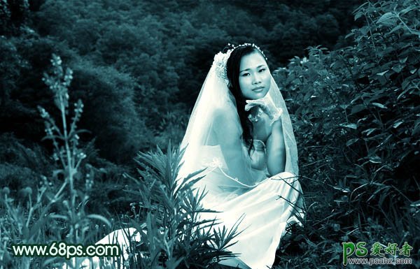 今天我们来学习一篇PS婚片后期调色实例教程,photoshop快速调出古典暗绿色美女婚片写真照,暗色图片处理需要注重人物部分的处理,因为图片调暗后人物肤色会变花,尤其是白色衣着的人物图片,衣服和人物都会变花,需要细心的磨皮及调色。 最终效果