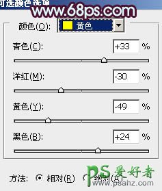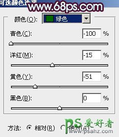 1、打开原图素材,创建可选颜色调整图层,对黄、绿、青、白、中性、黑色进行调整,参数设置如图1 - 6,确定后用黑色画笔把人物衣服部分擦出来,效果如图7。这一步把背景颜色转为紫色调。