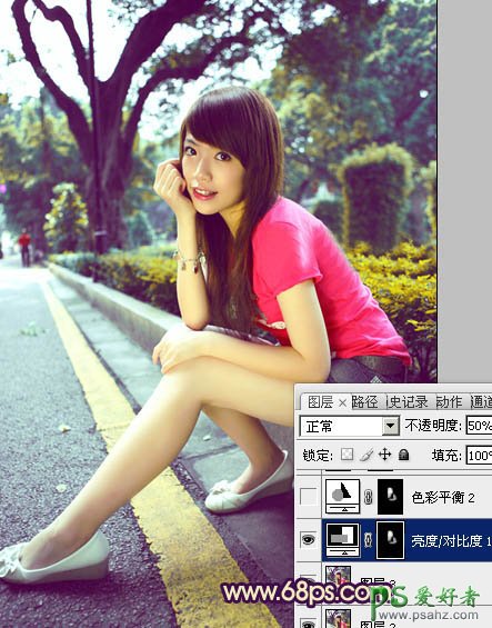 9、创建亮度/对比度调整图层,参数设置如图23,确定后把蒙版填充黑色,用白色画笔把人物脸部擦出来,效果如图24。