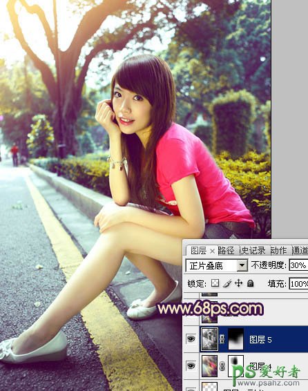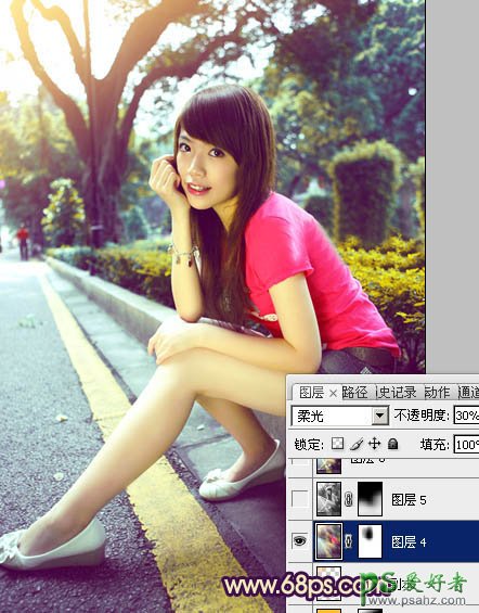 11、新建一个图层,按Ctrl + Alt + Shift + E 盖印图层。简单给图片柔化处理,再增加一些暗角,过程如图26,27。