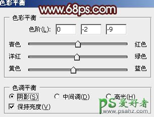 1、打开原图素材,创建色彩平衡调整图层,对阴影,高光进行调整,参数设置如图1,2,效果如图3。这一步微调头发及肤色颜色。