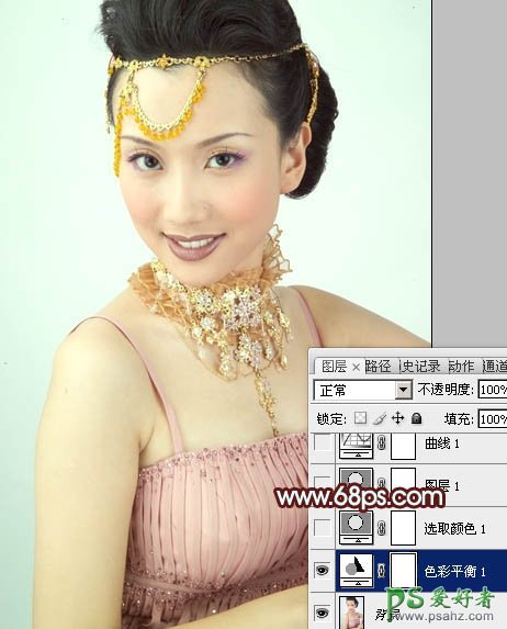 PS调色教程:给甜美的少女人像写真照调出粉青色效果