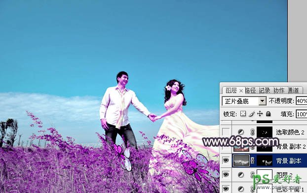 7、新建一个图层,按Ctrl + Alt + Shift + E 盖印图层。按Ctrl + Shift + U 去色。混合模式改为“正片叠底”,不透明度改为:40%,按住Alt键添加图层蒙版,用白色画笔把人物衣服部分擦出来,效果如下图。这一步增加衣服细节。
