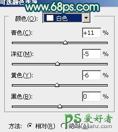 14、创建可选颜色调整图层,对白色进行调整,参数设置如图26,效果如图27,这一步调整高光颜色。