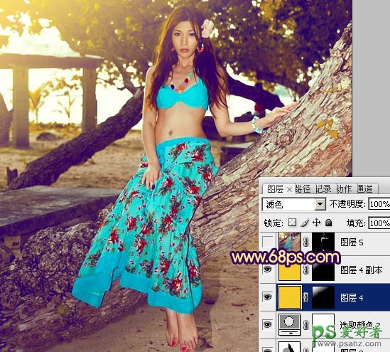 8、新建一个图层,填充橙黄色:#F4CB28,混合模式改为“滤色”,按住Alt键添加图层蒙版,用白色画笔把左上角部分擦出来,效果如下图。这一步给图片加上高光。