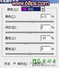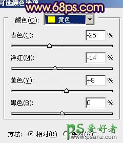7、创建可选颜色调整图层,对黄,洋红进行调整,参数设置如图19,20,效果如图21。这一步增加黄色部分亮度。