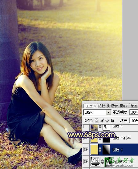 10、新建一个图层,填充黄色:#EFDC6E,混合模式改为“滤色”,按住Alt键添加图层蒙版,用白色画笔把右上角部分擦出来,效果如下图。