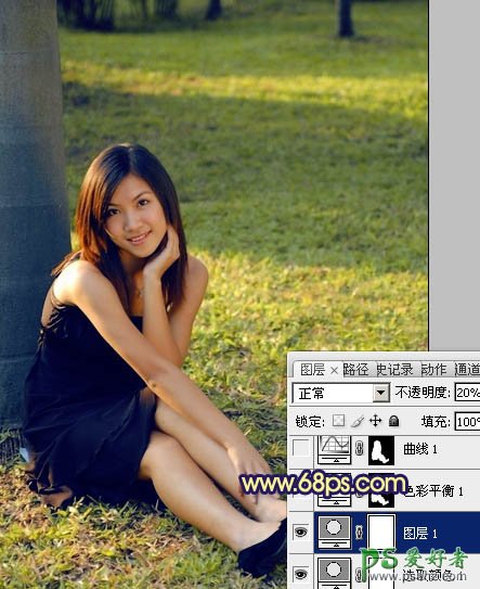 PS调色教程:给草地上漂亮的性色人体少女写真照调出淡黄色