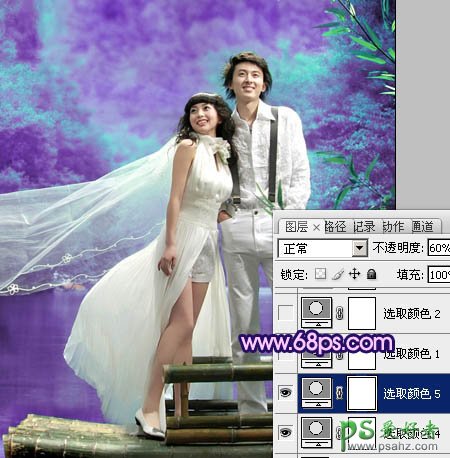 PS调色教程:给河景情侣婚纱照调出梦幻的蓝紫色