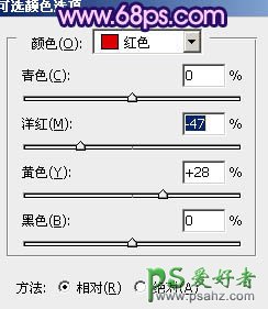 3、创建可选颜色调整图层,对红、绿、青、中性色进行调整,参数设置如图7 - 10,效果如图11。这一步微调人物肤色及背景颜色。