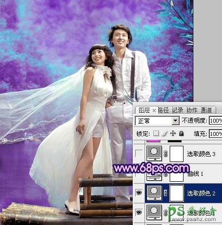 PS调色教程:给河景情侣婚纱照调出梦幻的蓝紫色