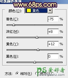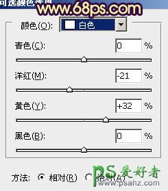 1、打开原图素材,创建可选颜色调整图层,对黄、绿、白、黑进行调整,参数设置如图1 - 4,效果如图5。这一步把背景绿色转为橙黄色,暗部增加暗蓝色。