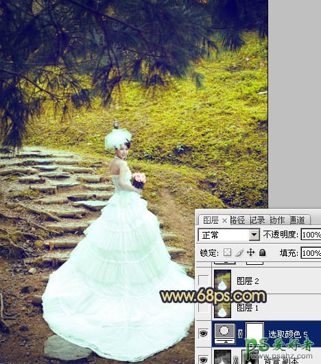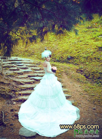 photoshop调出清爽的黄绿色外景少女婚纱艺术照