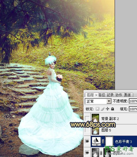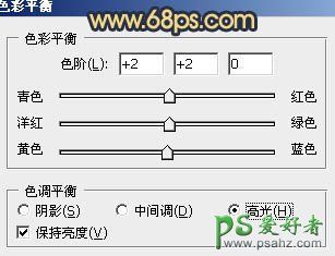 12、创建色彩平衡调整图层,对高光进行调整,参数设置如图29,效果如图30。