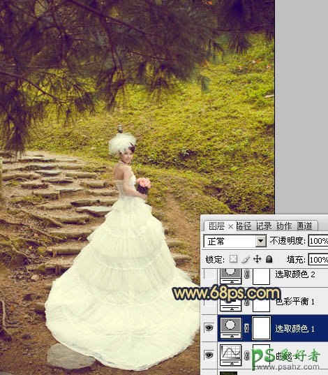 photoshop调出清爽的黄绿色外景少女婚纱艺术照