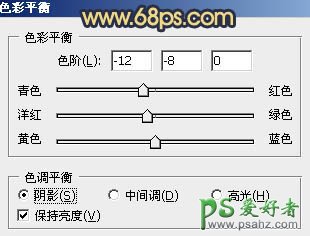 3、创建色彩平衡调整图层,对阴影,高光进行调整,参数设置如图9,10,效果如图11。这一步调整高光颜色,增加图片亮度。