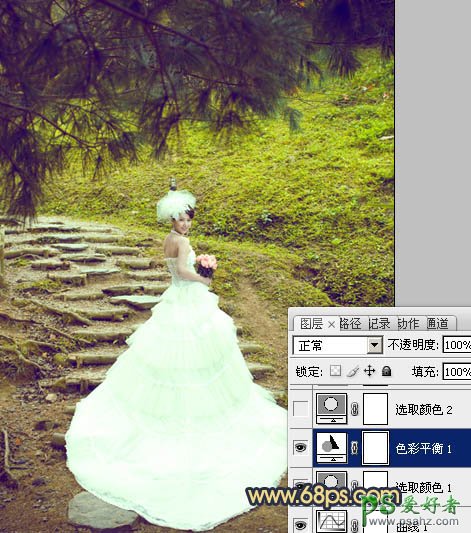 photoshop调出清爽的黄绿色外景少女婚纱艺术照