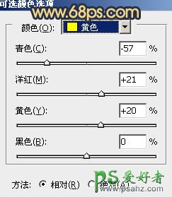4、创建可选颜色调整图层,对黄,蓝进行调整,参数设置如图12,13,确定后把图层不透明度改为:40%,效果如图14。