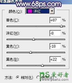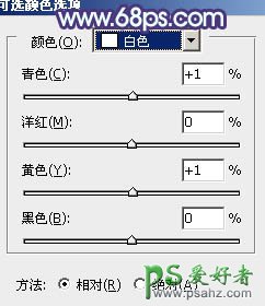 6、创建可选颜色调整图层,对洋红,白色进行调整,参数设置如图12,13,确定后用黑色画笔把不需要调色的部分擦出来,效果如图14。这一步去掉头发部分的一些杂色。