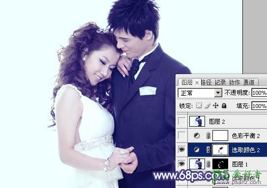 photoshop给清纯的情侣艺术照调出淡调青紫色效果