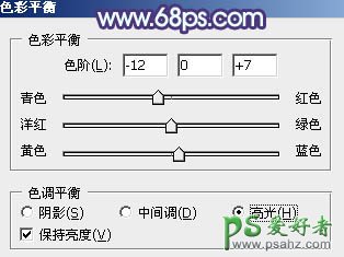 7、创建色彩平衡调整图层,对高光进行调整,参数设置如图15,效果如图16。这一步增加画面的淡青色。
