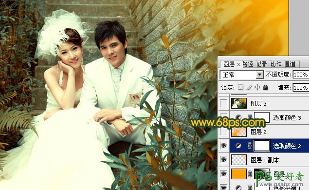 PS婚片后期调色实例教程,photoshop调出古典日光效果情侣婚纱照,素材图片以绿色为主,调色的时候只需要把绿色转为青绿色,再适当把色调调暗一点,高光部分加上一些橙黄色补色即可。 最终效果 原图 1、打开原图素材,按Ctrl + J 把
