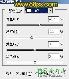 8、创建可选颜色调整图层,对白色,黑色进行调整,参数设置如图18,19,效果如图20。这一步微调高光和暗部颜色。