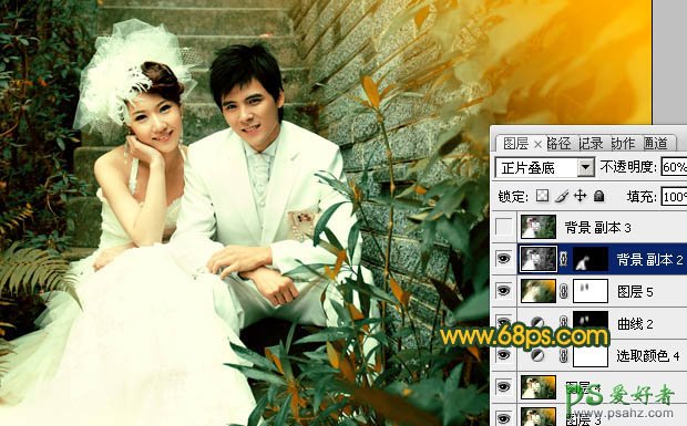 9、把背景图层复制一层,按Ctrl + Shift + ] 置顶,按Ctrl + Shift + U 去色,混合模式改为“正片叠底”,不透明度改为: 60%,按住Alt键添加图层蒙版,用白色画笔把人物衣服部分擦出来,增加细节,效果如下图。