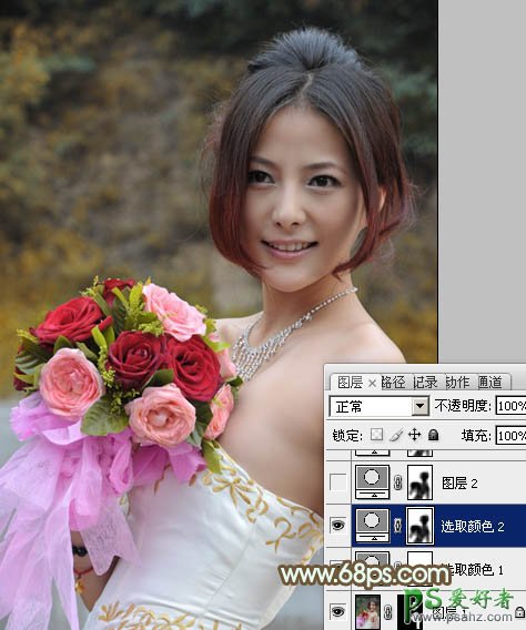 PS调色教程:给柔美的性感少女婚片调出秋季黄褐色