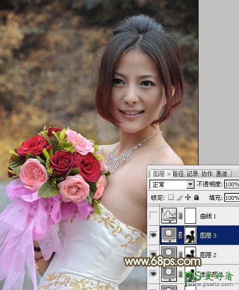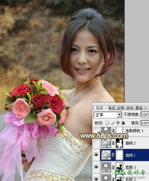PS调色教程:给柔美的性感少女婚片调出秋季黄褐色