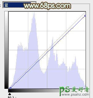 5、创建曲线调整图层,对蓝色进行调整,参数设置如图8,效果如图9。这一步增加画面的黄色。