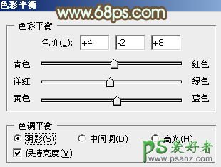 8、创建色彩平衡调整图层,对阴影,高光进行调整,参数设置如图14,15,效果如图16。这一步微调暗部及高光颜色,增加图片层次感。