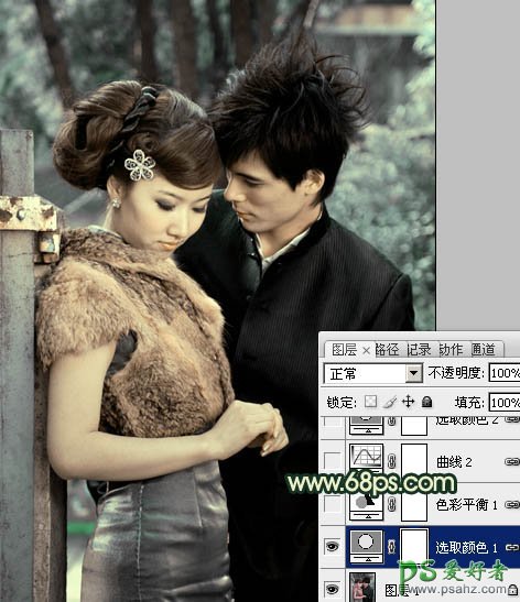 PS调色教程:给个性的情侣照调出古典青色效果