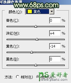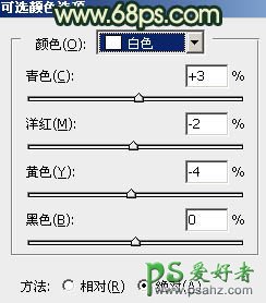 5、创建可选颜色调整图层,对黄、白、黑色进行调整,参数设置如图13 - 15,效果如图16。这一步微调高光及背景颜色。