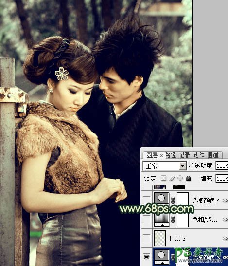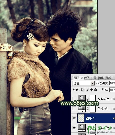 PS调色教程:给个性的情侣照调出古典青色效果