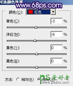 2、创建可选颜色调整图层,对红、黄、绿、洋红、白、黑进行调整,参数设置如图3 - 8,效果如图9。这一步微调背景颜色。