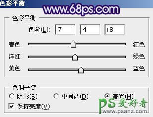 6、创建色彩平衡调整图层,对阴影、中间调、高光进行调整,参数设置如图19 - 21,效果如图22。这一步微调暗部及高光颜色。